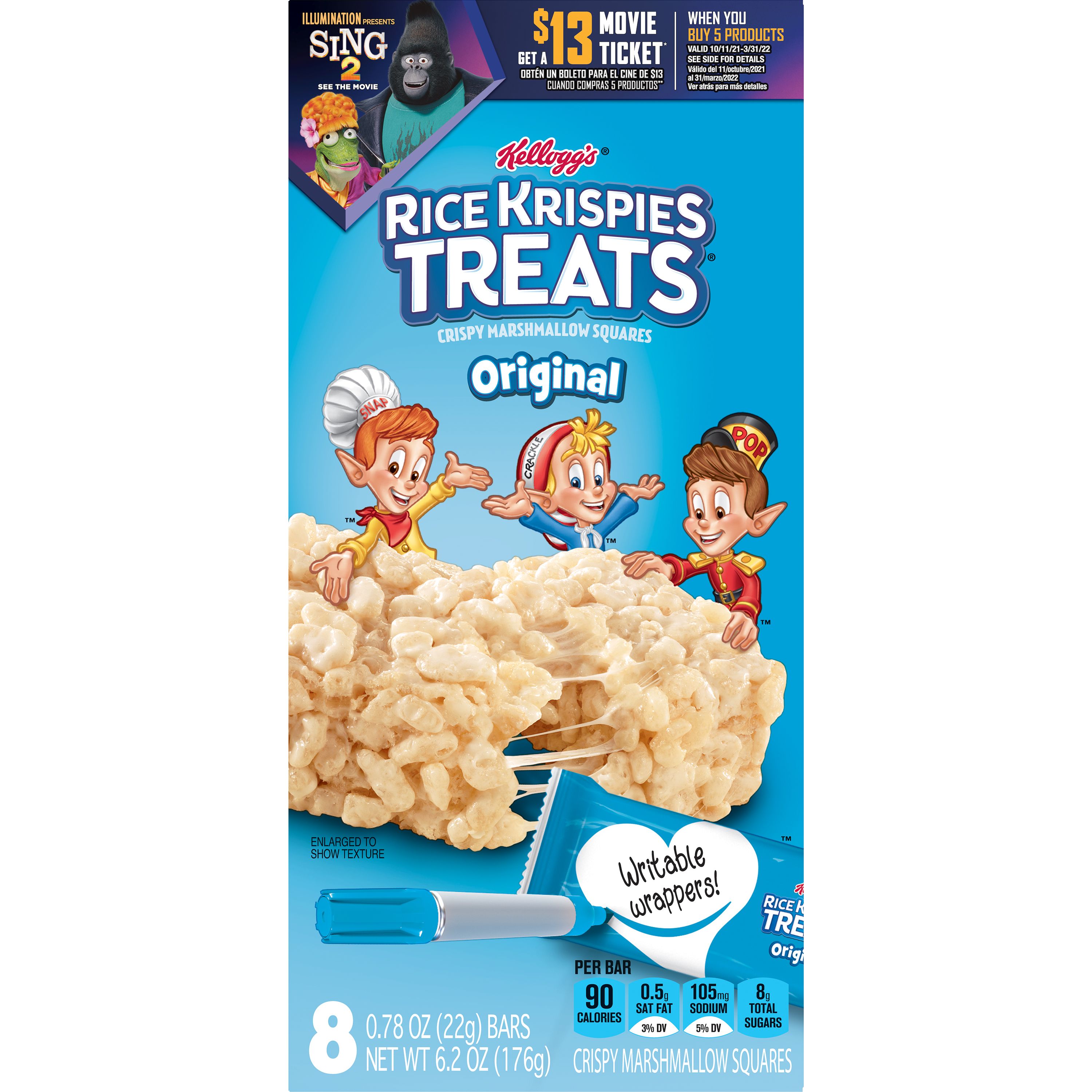 Kellogg S Rice Krispies Treats Marshmallow Snack Bars Original 8 Ct 6 2 Oz Box Walmart Com